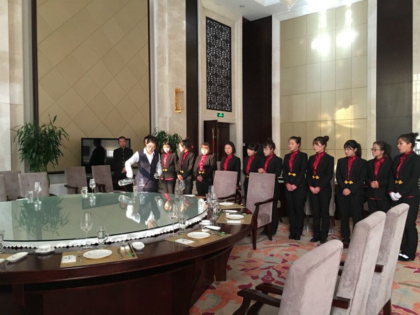 實(shí)訓(xùn)期間,同學(xué)們通過(guò)誦讀,軍訓(xùn)等方式體驗(yàn)了酒店的企業(yè)文化,在客房部,同學(xué)們向酒店客房服務(wù)員學(xué)習(xí)并實(shí)踐了如何對(duì)客房進(jìn)行清掃及查房,熟悉了客房部的日常工作規(guī)程;在餐飲部實(shí)習(xí)中,同學(xué)們向資深的餐廳服務(wù)員學(xué)習(xí)了如何擺臺(tái)、撤臺(tái)、點(diǎn)菜、上菜等一系列基本的餐廳服務(wù)方法,并對(duì)餐廳的服務(wù)流程有了具體的了解。