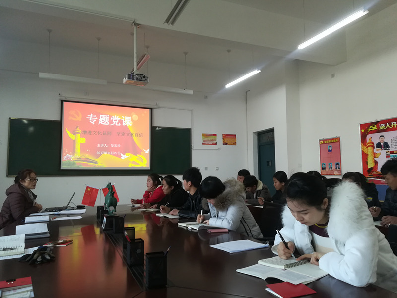 黨課以《增進文化認同 堅定文化自信》為主題,主要從文化認同是文化自信的基礎和源泉、文化認同與文化自信具有價值追求一致性兩個方面進行了講解。
