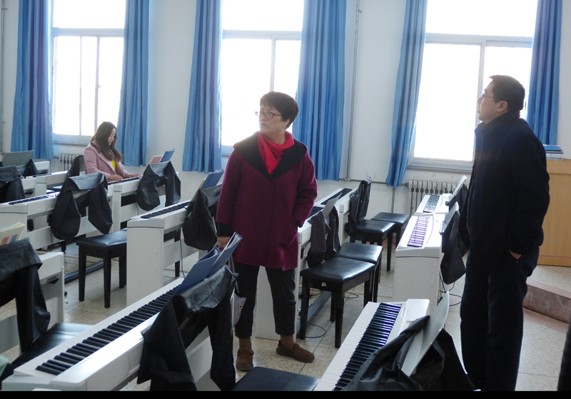 會后妙學春一行在胡靜峰同志的陪同下參觀了電鋼琴實訓室和舞蹈實訓室。