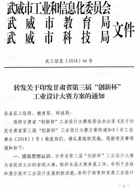甘肅省“創(chuàng)新杯”工業(yè)設計大賽組委會辦公室關于印發(fā)甘肅省第三屆“創(chuàng)新杯”工業(yè)設計大賽方案的通知