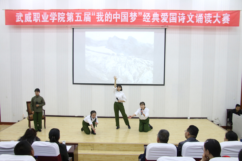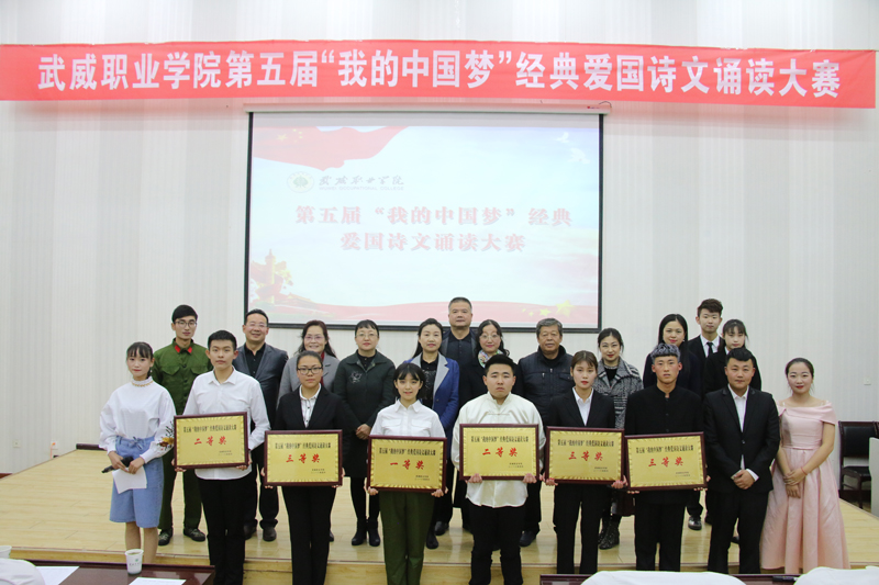 全場比賽以“我的中國夢”為切入點,誦詩抒情、借詞言志,傳承中華民族經(jīng)典愛國詩詞和優(yōu)秀傳統(tǒng)文化,培育與踐行社會主義核心價值觀。各參賽作品融入了歌曲、場景表演等多種藝術(shù)形式,進一步激發(fā)了同學們的愛國熱情和報國之志。經(jīng)過激烈角逐,醫(yī)學技術(shù)與信息管理系選送的作品《永遠的格桑梅朵》榮獲一等獎;人文藝術(shù)教育系選送的作品《我的墓碑》、護理系選送的作品《人民萬歲》榮獲二等獎;現(xiàn)代農(nóng)業(yè)技術(shù)系選送的作品《我的爸爸》、汽車工程系選送的作品《海棠花祭》、建筑工程系選送的作品《中國軍魂》榮獲三等獎。