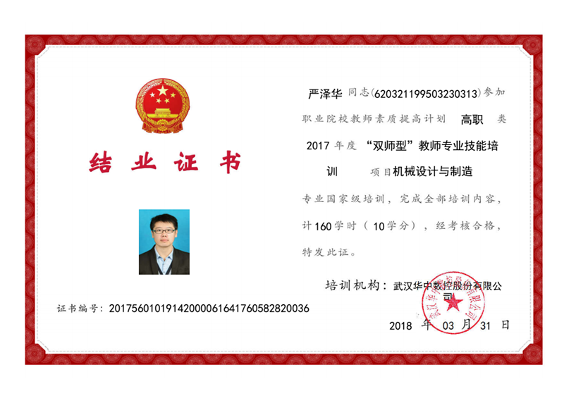“雙師型”教師專業(yè)技能培訓(xùn)證書