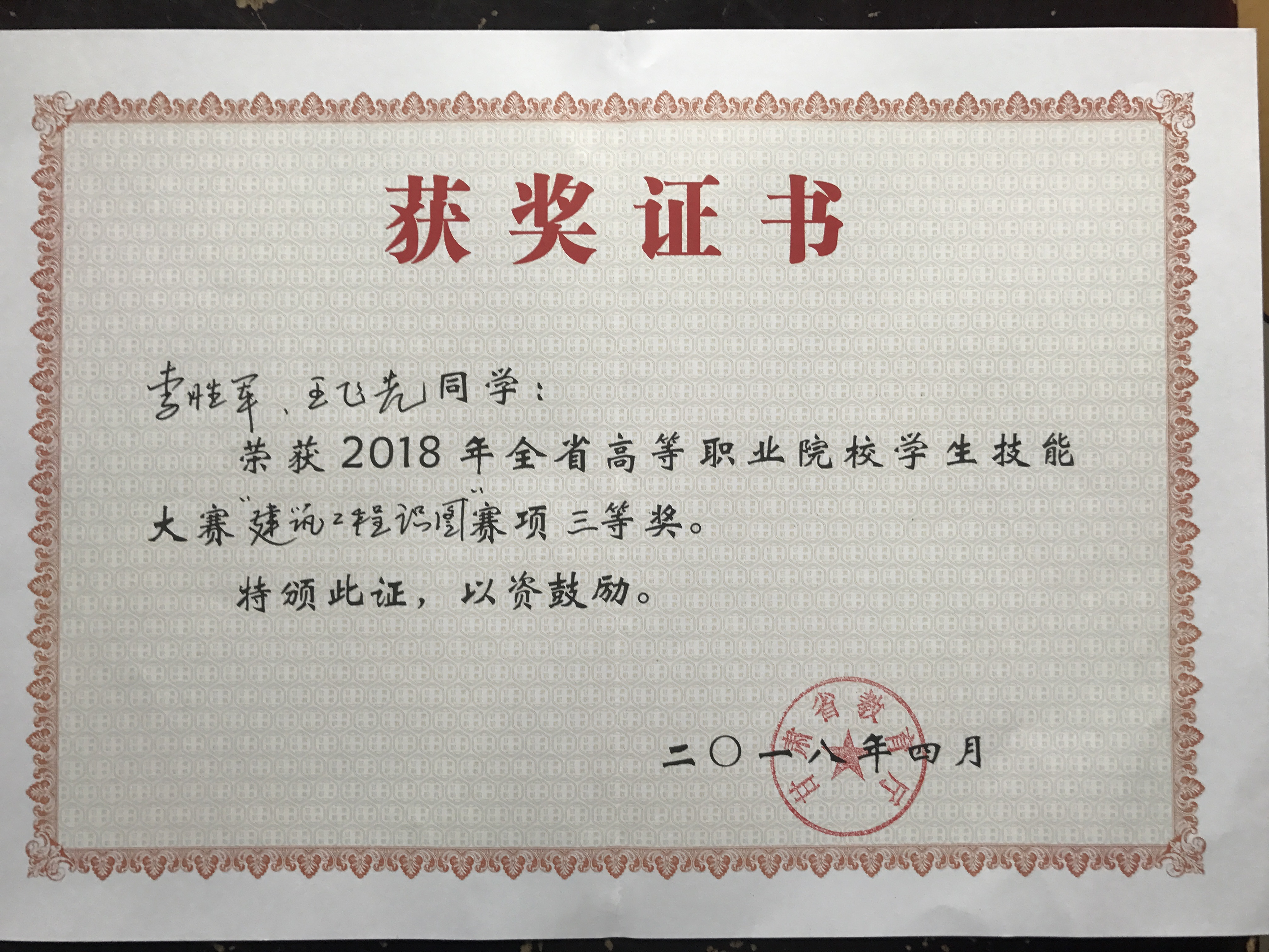 建筑工程系學(xué)生在2018年全省職業(yè)院校技能大賽中榮獲三等獎