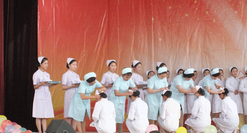 在授帽儀式上,來自護(hù)理系2016級(jí)的學(xué)生代表身著潔白的護(hù)士服,依次上臺(tái),由直屬附屬醫(yī)院的護(hù)士長(zhǎng)與護(hù)理系教師為其授予了燕尾帽,并接過了護(hù)理前輩手中的蠟燭,全體護(hù)士莊嚴(yán)宣誓,用愛去守護(hù)生命,用行動(dòng)去踐行南丁格爾誓言,獻(xiàn)身護(hù)理事業(yè),一頂頂質(zhì)樸的燕尾帽,一聲聲莊嚴(yán)的宣誓,進(jìn)一步讓護(hù)理專業(yè)學(xué)生們感受到了護(hù)士的責(zé)任與榮耀,此刻起,她們不但承擔(dān)起救死扶傷的神圣職責(zé),還肩負(fù)著發(fā)展護(hù)理事業(yè)的光榮使命。隨后,參會(huì)領(lǐng)導(dǎo)為學(xué)院第五屆護(hù)理技能大賽獲獎(jiǎng)團(tuán)體與個(gè)人頒發(fā)了獎(jiǎng)狀和榮譽(yù)證書。