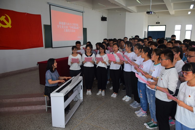 為更好地激發(fā)學(xué)生黨員的愛黨、愛國熱情,增強黨性,增強組織生活的儀式感和嚴(yán)肅性,新能源與動力工程學(xué)院學(xué)生黨支部于5月31日下午在明德樓001教室舉辦“重溫國歌,學(xué)唱國際歌”主題黨日活動。本次活動邀請人文藝術(shù)教育系王小娟老師做藝術(shù)教學(xué)指導(dǎo)。