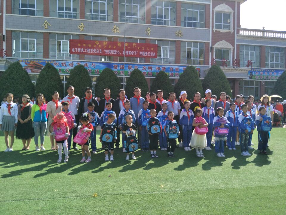5月31日8點(diǎn),電子信息工程系黨總支全體黨員和學(xué)生入黨積極分子赴涼州區(qū)新華鎮(zhèn)李府小學(xué)開展“扶貧獻(xiàn)愛心,真情寄學(xué)子”主題黨日活動,為精準(zhǔn)扶貧建檔立卡學(xué)生送去了學(xué)習(xí)、生活用品,與孩子們共同度過了一個快樂、祥和的六一國際兒童節(jié)。