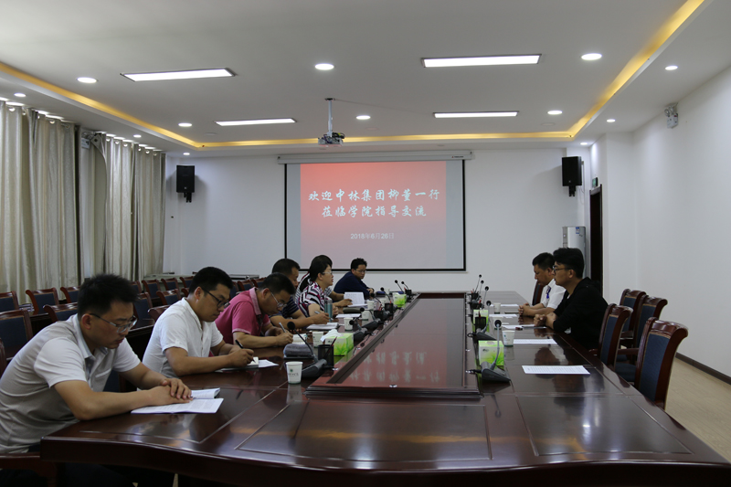 6月26日下午,中國林業(yè)集團中國林產(chǎn)品有限公司董事長柳鳳柱、鎮(zhèn)江國林生態(tài)產(chǎn)業(yè)城有限公司副總經(jīng)理趙磊來學(xué)院考察交流。交流座談會在行樹樓210會議室舉行。會議由副院長田迎春主持,招生就業(yè)處、機械制造系、經(jīng)濟管理系、汽車系、建筑工程系、現(xiàn)代農(nóng)業(yè)技術(shù)系有關(guān)同志參加了座談。