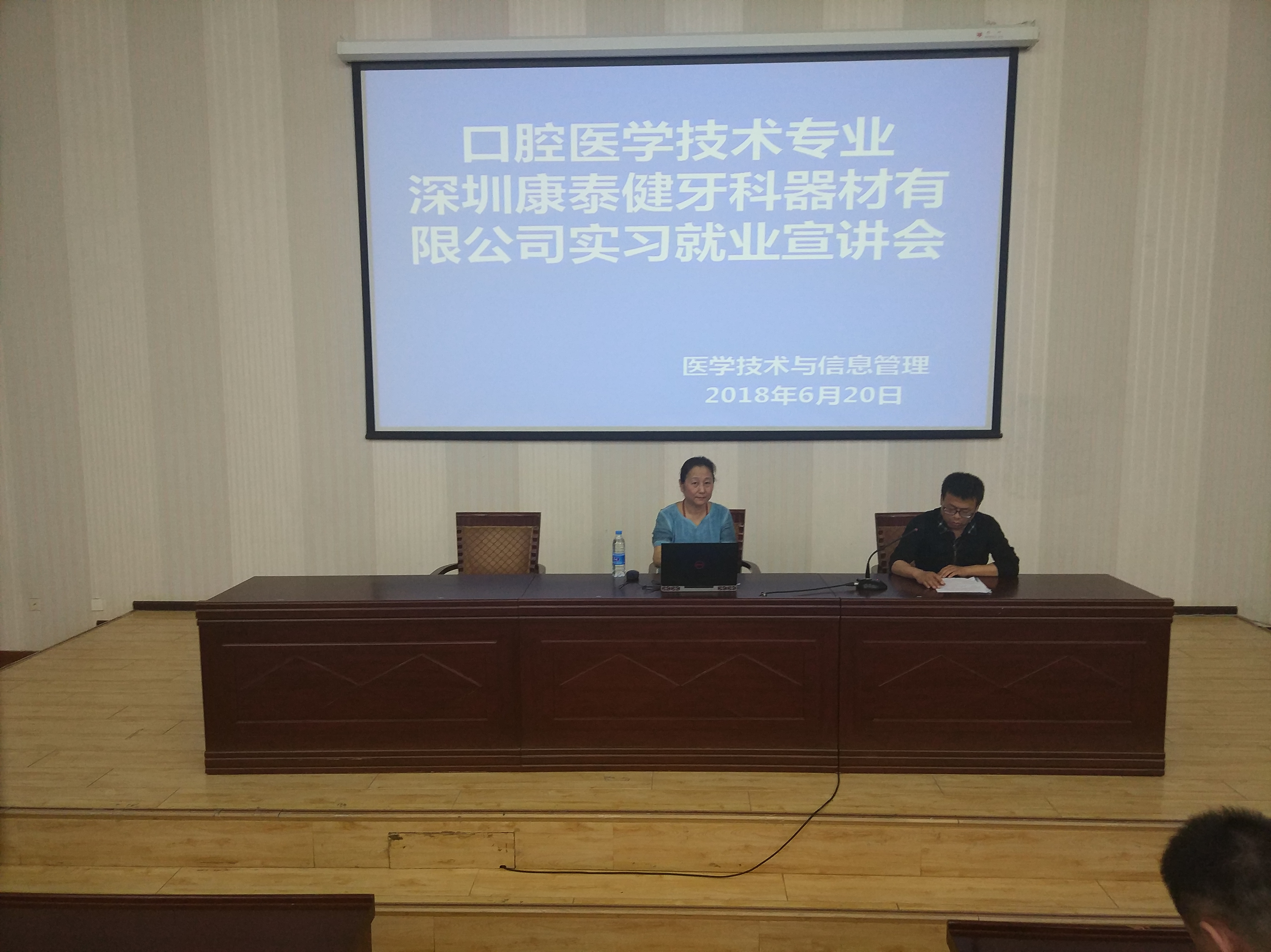辛金紅校長(zhǎng)對(duì)口腔醫(yī)學(xué)技術(shù)專業(yè)的發(fā)展歷史和當(dāng)前口腔醫(yī)學(xué)技術(shù)的前景做了詳細(xì)介紹;介紹了深圳市康泰健牙科器材有限公司的概況、理念、人才策略,和對(duì)新員工的具體要求和發(fā)展通道;對(duì)同學(xué)最關(guān)心的實(shí)習(xí)期間的待遇進(jìn)行了現(xiàn)場(chǎng)解答。