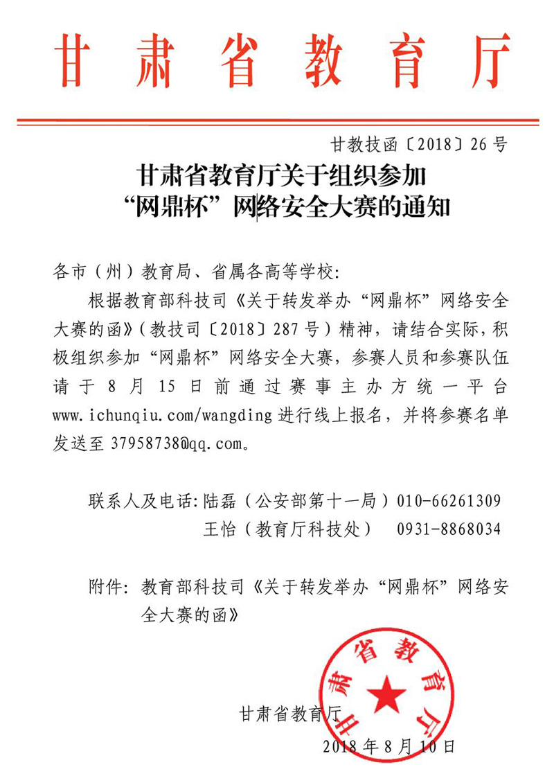 甘肅省教育廳關于組織參加 “網(wǎng)鼎杯”網(wǎng)絡安全大賽的通知