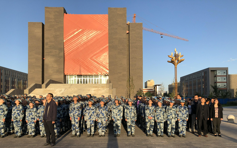 師生們精神飽滿,抬頭挺胸,伴著《義勇軍進(jìn)行曲》的響起,唱國(guó)歌、行注目禮,莊嚴(yán)肅穆。