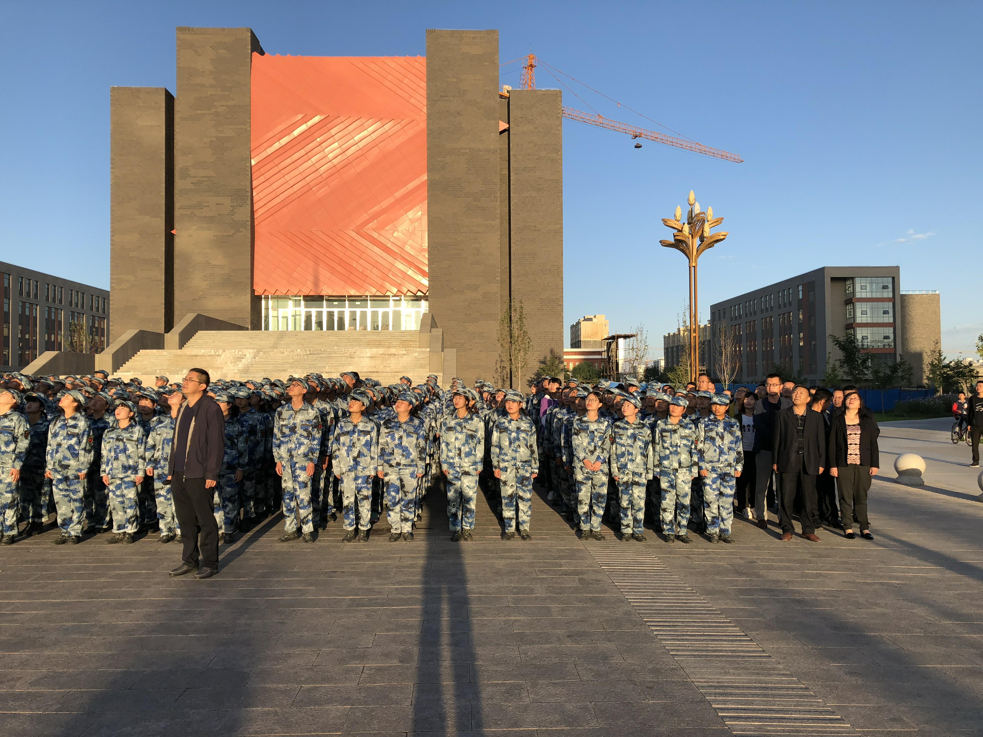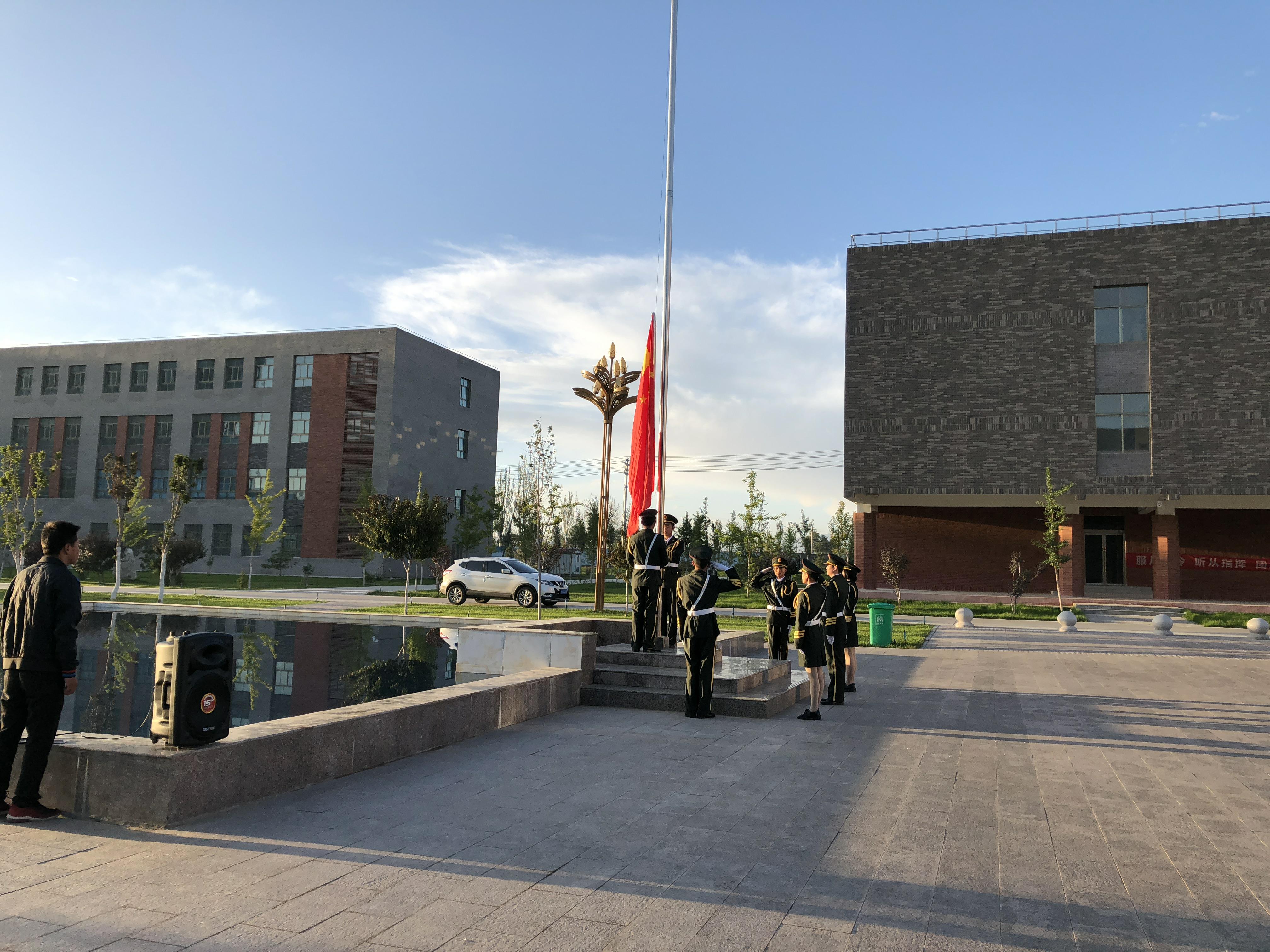 ??? 師生們精神飽滿,抬頭挺胸,伴著《義勇軍進行曲》的響起,唱國歌、行注目禮,莊嚴肅穆。