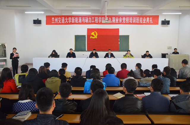 結(jié)業(yè)典禮由任陶主持。高蕊宣讀了《蘭州交通大學(xué)新能源與動(dòng)力工程學(xué)院關(guān)于第九期業(yè)余黨校培訓(xùn)班結(jié)業(yè)情況的通報(bào)》。本次培訓(xùn)歷時(shí)半個(gè)多月,共有120名學(xué)員參加培訓(xùn),保證24學(xué)時(shí)的教學(xué)。通過課堂紀(jì)律、上課考勤、撰寫心得體會和結(jié)業(yè)考試等方面的考查,共有40名擬發(fā)展對象和73名入黨積極分子成績合格,予以結(jié)業(yè),合格率為94.17%。任陶宣讀了本次培訓(xùn)成績合格的學(xué)員名單。學(xué)員代表孟杰同學(xué)在發(fā)言中總結(jié)了在業(yè)余黨校學(xué)習(xí)的收獲,表示在今后要努力學(xué)習(xí),積極工作,嚴(yán)格要求自己,明確追求與理想,不懈拼搏,爭取早日成為一名光榮的中國共產(chǎn)黨黨員。
