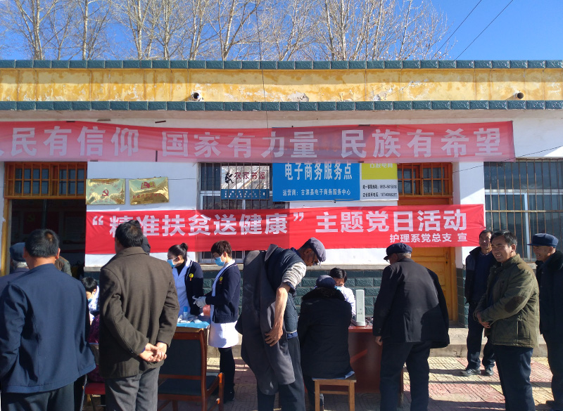 為深入學(xué)習(xí)宣傳貫徹黨的十九大精神及健康扶貧等惠民政策,減少出現(xiàn)“因病致貧”、“因病返貧”,11月23日,護(hù)理系黨總支組織黨員教師到我院精準(zhǔn)扶貧點(diǎn)古浪縣黑松驛鎮(zhèn)尚家臺(tái)村開展“健康扶貧,送醫(yī)送藥”主題黨日活動(dòng)。