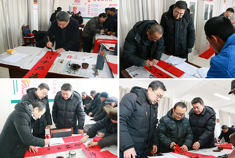 1月9日,學(xué)院扶貧幫扶點(diǎn)古浪縣黃花灘8號移民點(diǎn)熱鬧非凡,人文藝術(shù)教育系黨總支開展了一場喜慶活潑的“喜迎佳節(jié)、送春聯(lián)文化進(jìn)萬家”主題黨日活動,村委會內(nèi)外圍滿了欣賞書畫的干部群眾。
