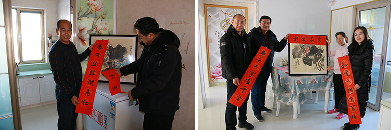在寫完300余幅春聯(lián)后,幫扶干部將春聯(lián)、繪畫作品送到幫扶對象家中,將新春的祝福和慰問一一送達(dá),與他們交心談心拉家常,傳達(dá)中央的各項(xiàng)會議精神及惠民政策,確保貧困戶過一個溫暖祥和的春節(jié)。