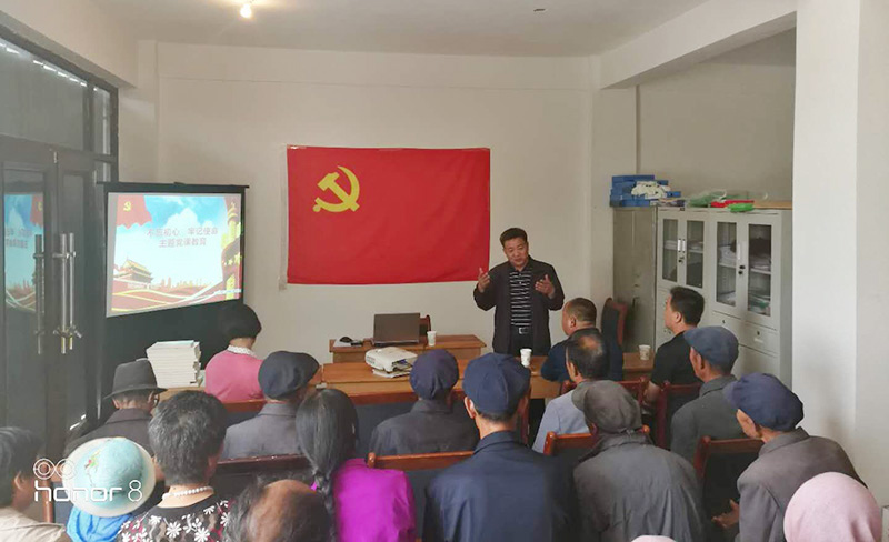 為做好抓黨建促脫貧攻堅(jiān)和加強(qiáng)基層黨組織建設(shè),6月14日,學(xué)院領(lǐng)導(dǎo)、幫扶干部來到對口幫扶的移民點(diǎn)蘆草溝村、尚家臺村村委會為村民黨員講黨課,為蘆草溝村、尚家臺村黨組織、駐村工作隊(duì)、村民黨員贈送黨建書籍和掃黑除惡知識手冊。