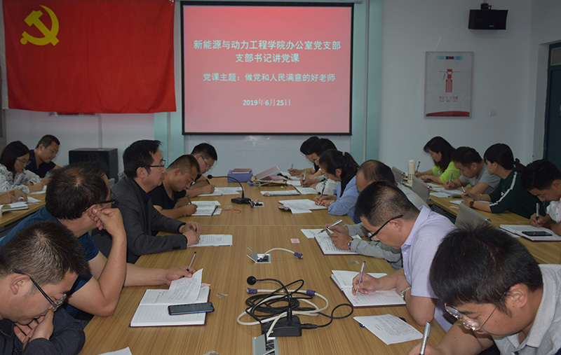 6月25日下午,新能源與動力工程學院辦公室黨支部書記任陶以《大學的定力與初心——做黨和人民滿意的好老師》為題講黨課,支部全體黨員聆聽了此次黨課。