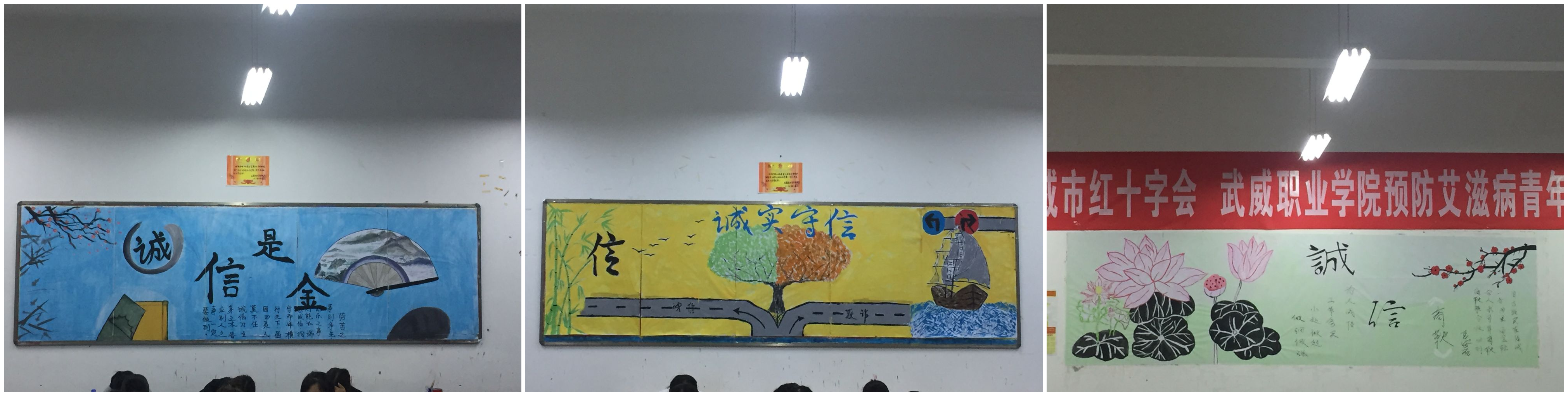 本次“誠(chéng)實(shí)守信”主題教育活動(dòng)包含誠(chéng)實(shí)守信主題班會(huì)、誠(chéng)實(shí)守信主題黑板報(bào)比賽、“誠(chéng)實(shí)守信我想說(shuō)”微演講、誠(chéng)實(shí)守信主題簽名活動(dòng)四項(xiàng)內(nèi)容。四項(xiàng)活動(dòng)緊密聯(lián)系,主題鮮明、宣傳了國(guó)家及學(xué)院資助政策,讓誠(chéng)實(shí)守信意識(shí)深入到每一位學(xué)生心中,激勵(lì)同學(xué)們做一個(gè)具有正確三觀、德智體美勞全面發(fā)展的社會(huì)主義建設(shè)者和接班人。