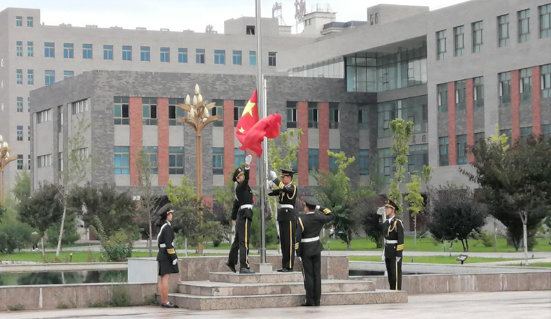 2019年8月26日,人文藝術教育系全體師生在學院圖書館東廣場舉行升國旗儀式。7點20分,伴隨著雄壯的國歌聲和護旗手鏗鏘有力的步伐,升旗儀式正式開始。