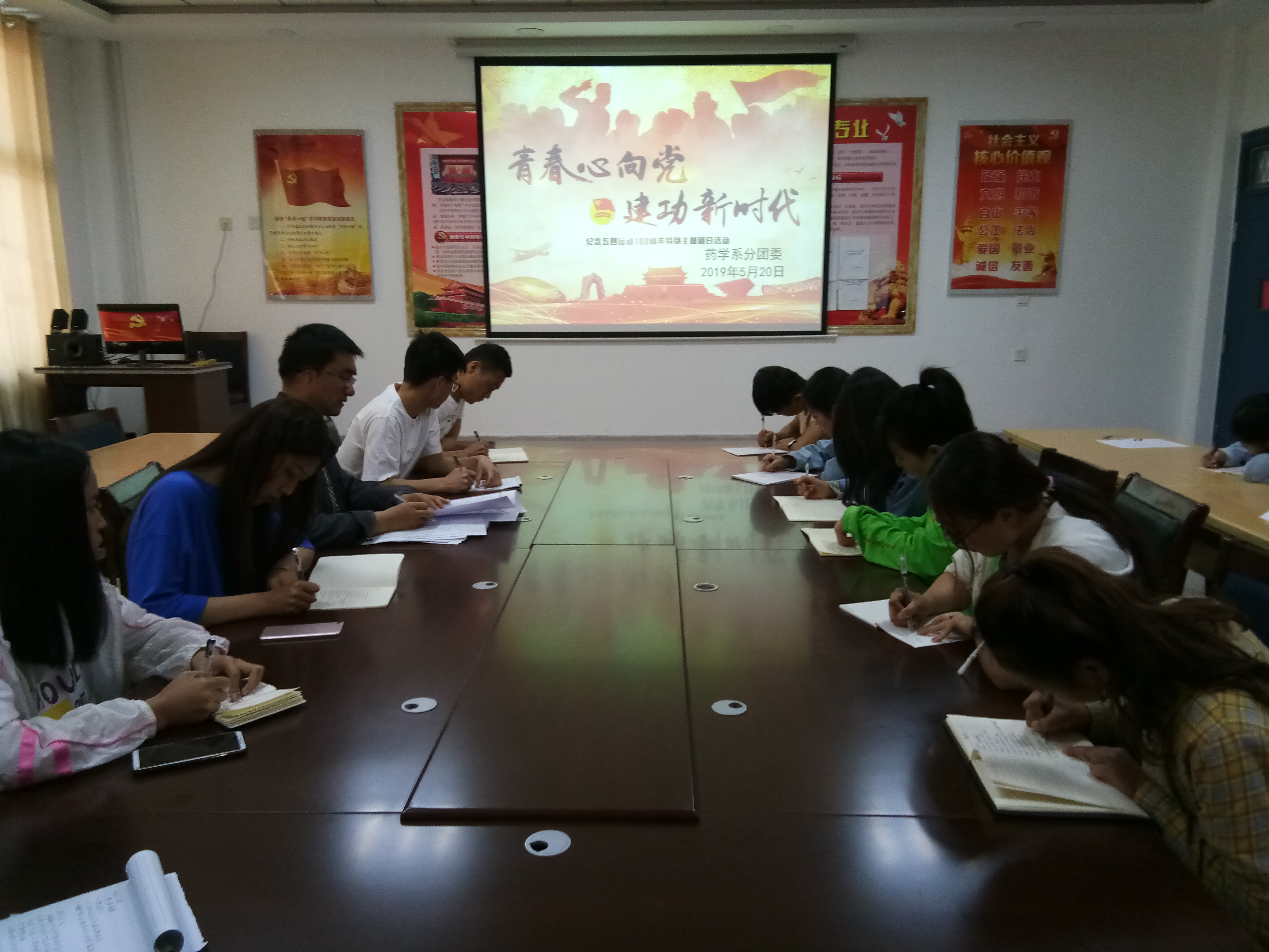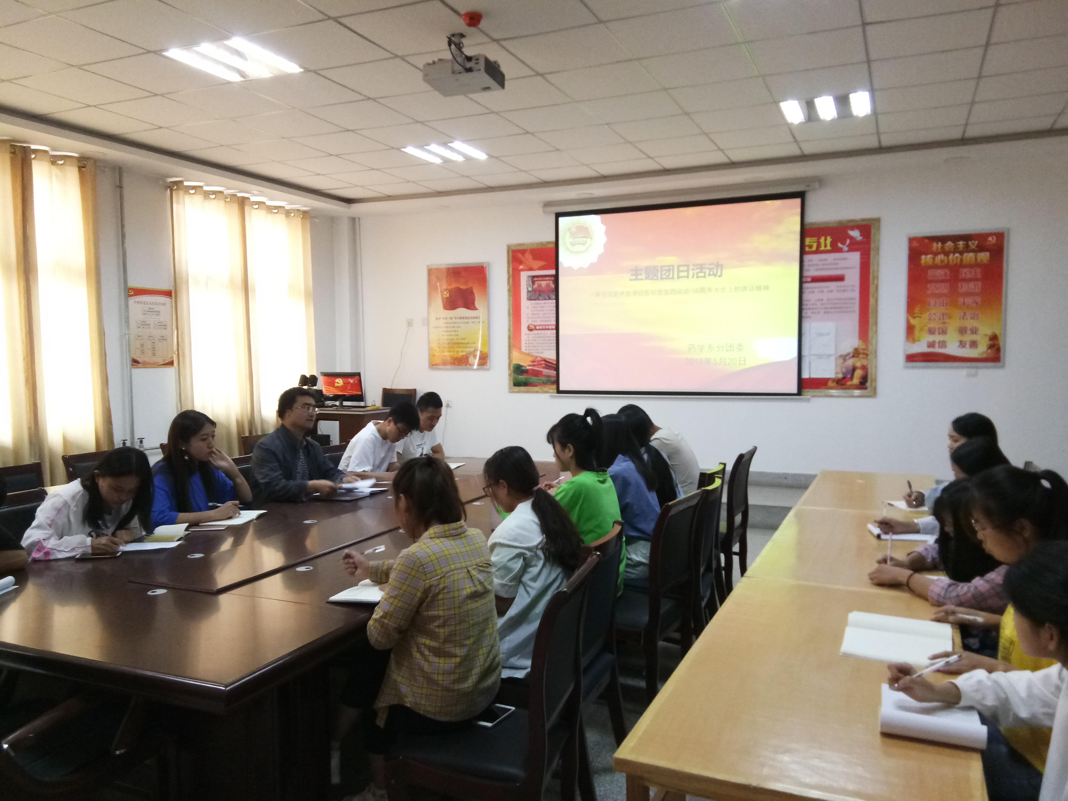 為深入學(xué)習(xí)貫徹習(xí)近平總書記在紀念五四運動100周年大會上的講話精神。5月20日下午,藥學(xué)系分團委組織團學(xué)干部、入黨積極分子及團員代表等20余人在明遠樓103會議室開展了學(xué)習(xí)習(xí)近平總書記在紀念五四運動100周年大會上的講話精神主題團日活動,活動由系分團委書記陳輝生主持。