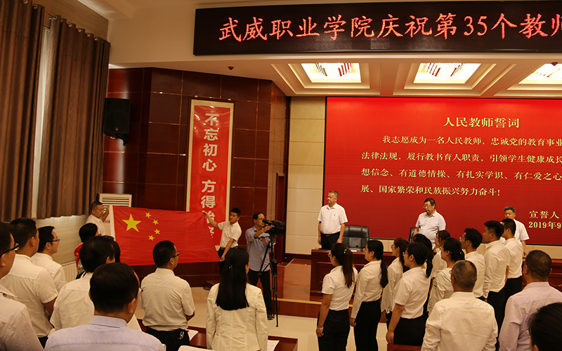趙明強調(diào),全體教職工以更高的責任感和使命感,以更飽滿的熱情投入到學院各項工作中來,以開展“不忘初心、牢記使命”主題教育為契機,認真學習貫徹習近平同志視察甘肅重要講話和指示精神,立足本職、扎實工作、奮發(fā)有為、開拓創(chuàng)新,爭做“四有”好老師,不斷創(chuàng)造新業(yè)績,為促進高等職業(yè)教育事業(yè)發(fā)展,實現(xiàn)學院高水平高質量發(fā)展做出新的更大的貢獻!