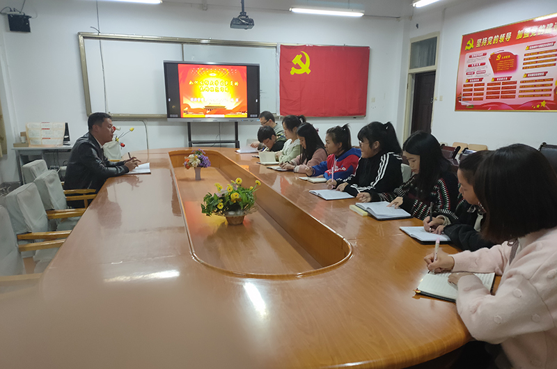 學(xué)生支部書記姚盈老師帶領(lǐng)全體黨員學(xué)生重溫學(xué)習(xí)習(xí)總書記在黨的十九大報告中提出的“不忘初心,牢記使命”,用黨的理論武裝頭腦,加強(qiáng)青年學(xué)生的理論素養(yǎng)。
