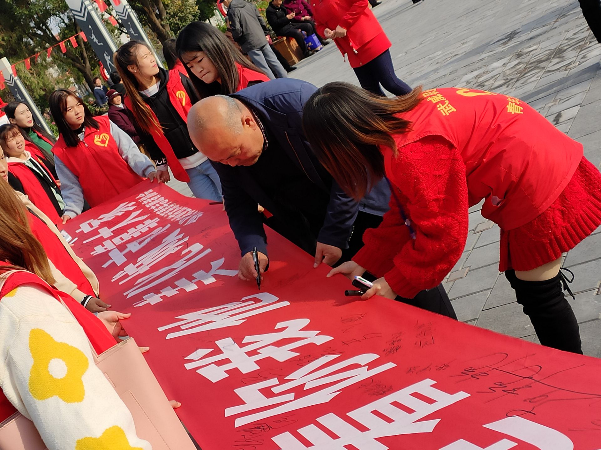 我系青年志愿者在武威市涼州區(qū)西郊公園附近街道及社區(qū)開展創(chuàng)建文明城市的問卷調(diào)查和橫幅簽名以及撿拾垃圾三項活動。