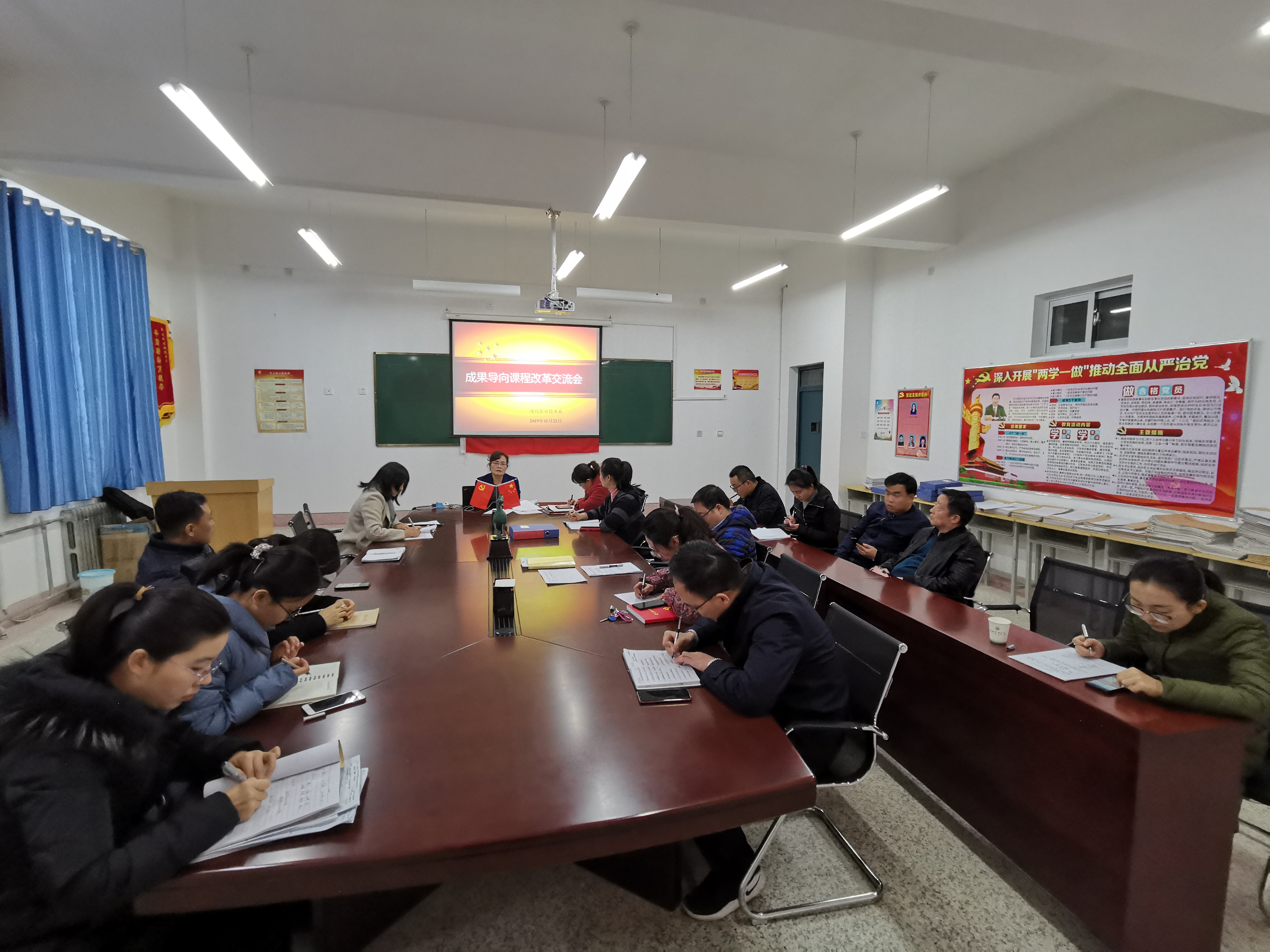 為了切實(shí)推進(jìn)我系成果導(dǎo)向教育(OBE)課程改革工作進(jìn)程,解決課程改革實(shí)踐中的問題。11月22日,現(xiàn)代農(nóng)業(yè)技術(shù)系在行樹樓教學(xué)區(qū)309會議室組織舉行OBE-課程改革培訓(xùn)交流會。黨總支書記晏素珍主持會議并為全系教師做“成果導(dǎo)向課程改革”培訓(xùn)。