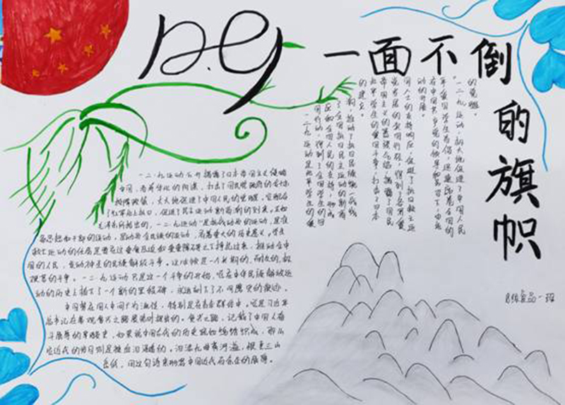 今年是“12.9”愛國(guó)運(yùn)動(dòng)84周年?,F(xiàn)代農(nóng)業(yè)技術(shù)系的十二個(gè)班級(jí)通過(guò)辦手抄報(bào)的形式開展紀(jì)念“12·9”運(yùn)動(dòng),旨在加強(qiáng)學(xué)生的愛國(guó)主義教育,弘揚(yáng)愛國(guó)主義精神,教育學(xué)生銘記歷史,勿忘國(guó)恥,增強(qiáng)民族自豪感。