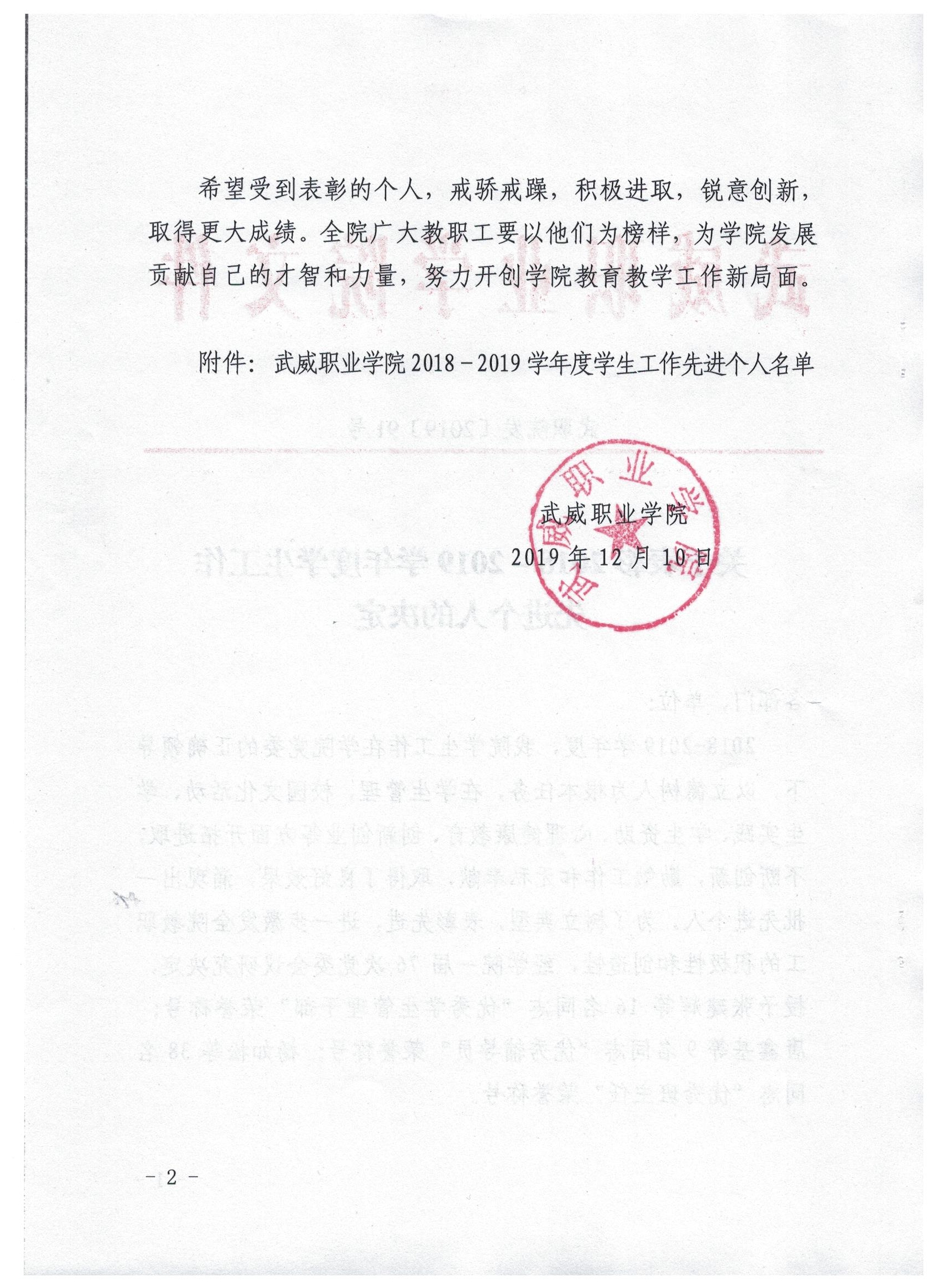 關(guān)于表彰2018-2019學(xué)年度學(xué)生工作先進(jìn)個(gè)人的決定