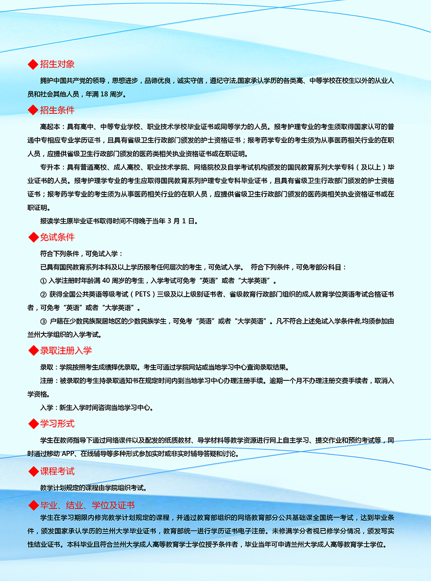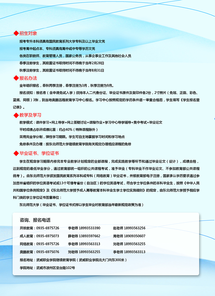 武威職業(yè)學(xué)院繼續(xù)教育學(xué)院2020年招生簡章