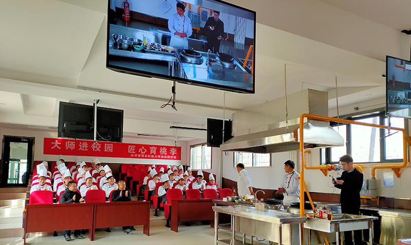 2019年12月13日,王品(中國)餐飲有限公司西安店主廚畢朝威,12月26日,山東藍(lán)海集團(tuán)大廚郭玉忠分別為經(jīng)濟(jì)管理系烹調(diào)工藝與營養(yǎng)專業(yè)120多名學(xué)生進(jìn)行鵝肝制作、果盤制作、面點(diǎn)制作、熱菜制作的廚藝表演,并在現(xiàn)場與系部領(lǐng)導(dǎo)交流、對(duì)學(xué)生分享廚藝心得和技術(shù)要領(lǐng)。