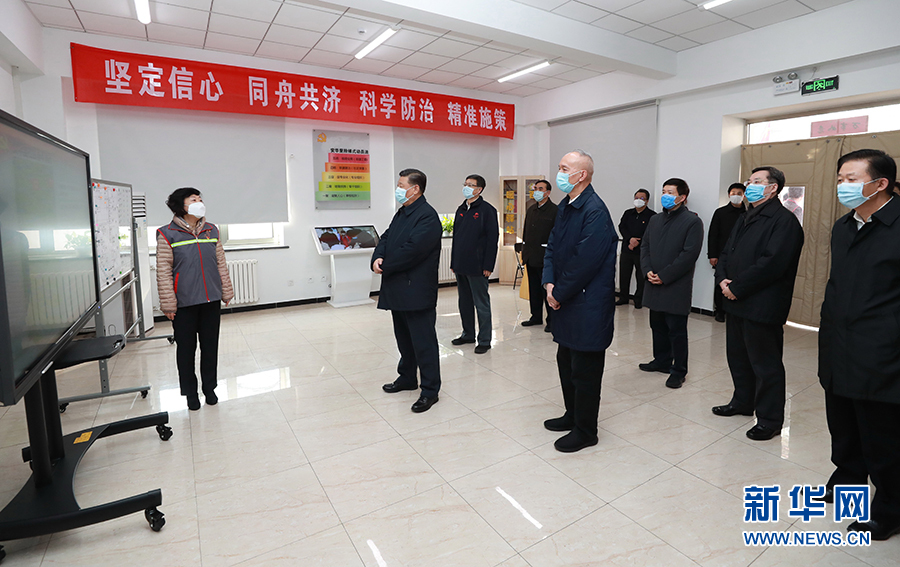 2月10日,中共中央總書記、國(guó)家主席、中央軍委主席習(xí)近平在北京調(diào)研指導(dǎo)新冠肺炎疫情防控工作。這是習(xí)近平在朝陽區(qū)安貞街道安華里社區(qū),了解基層一線疫情聯(lián)防聯(lián)控情況。 新華社記者 鞠鵬 攝