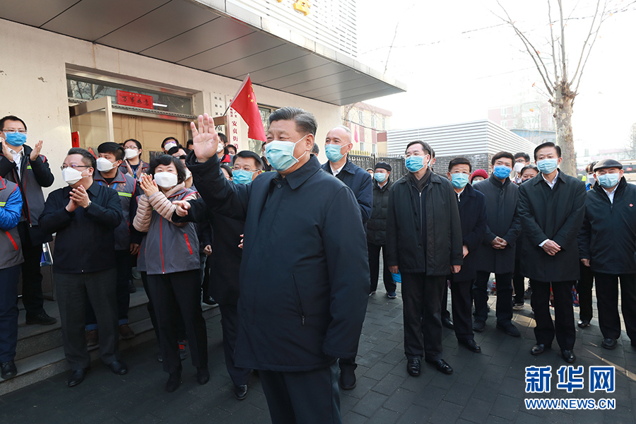 2月10日,中共中央總書記、國(guó)家主席、中央軍委主席習(xí)近平在北京調(diào)研指導(dǎo)新冠肺炎疫情防控工作。這是習(xí)近平來到朝陽區(qū)安貞街道安華里社區(qū),了解基層一線疫情聯(lián)防聯(lián)控情況。 新華社記者 鞠鵬 攝
