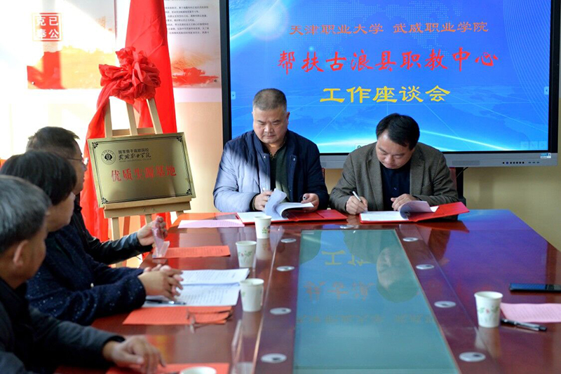 對接會上,趙明為古浪職教中心頒授“優(yōu)質(zhì)生源基地”牌匾,簡要介紹了學(xué)院近年來取得的重要辦學(xué)成果。他表示,學(xué)院今年顯著加強(qiáng)了同古浪職教中心的合作力度,今后還要擴(kuò)大合作培養(yǎng)專業(yè),全方位深化合作關(guān)系,共同培養(yǎng)職業(yè)技能人才。他強(qiáng)調(diào),通過兩校的合作辦學(xué),我們要取長補(bǔ)短,促進(jìn)中高職貫通培養(yǎng)大力發(fā)展。會上,王守云同古浪職教中心校領(lǐng)導(dǎo)簽署了“2020年中高職貫通培養(yǎng)辦學(xué)合作協(xié)議”。