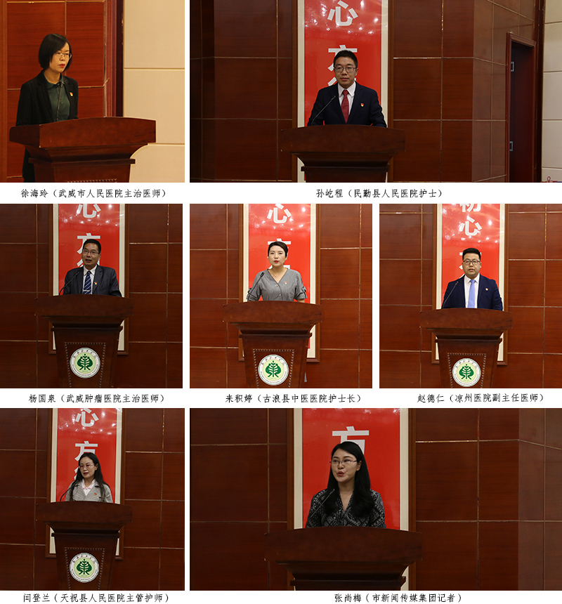 宣講報(bào)告團(tuán)成員由6位援鄂優(yōu)秀隊(duì)員代表和市新聞傳媒集團(tuán)的1位記者組成。宣講會(huì)上,武威市人民醫(yī)院主治醫(yī)師徐海玲、民勤縣人民醫(yī)院護(hù)士孫屹程、武威腫瘤醫(yī)院主治醫(yī)師楊國(guó)泉、古浪縣中醫(yī)醫(yī)院護(hù)士長(zhǎng)來積婷、涼州醫(yī)院副主任醫(yī)師趙德仁、天祝縣人民醫(yī)院主管護(hù)師閆登蘭,市新聞傳媒集團(tuán)記者張尚梅,用自己的親身經(jīng)歷和樸實(shí)生動(dòng)的語言,從主動(dòng)請(qǐng)戰(zhàn)、逆行出征、克服困難、參與救治、關(guān)愛患者、勝利歸來等多個(gè)方面,滿懷深情地講述了他們?cè)谥г逼陂g的難忘瞬間與暖心經(jīng)歷。他們用實(shí)際行動(dòng)譜寫了一曲感天動(dòng)地的英雄贊歌,生動(dòng)詮釋了新時(shí)代武威精神,是武威人民的優(yōu)秀兒女,是當(dāng)之無愧的“白衣戰(zhàn)士”、“最美逆行者”和“新時(shí)代最可愛的人”。會(huì)場(chǎng)不時(shí)響起如雷的掌聲。武威援鄂醫(yī)療隊(duì)全體成員以強(qiáng)烈的使命感和責(zé)任感,堅(jiān)持奮戰(zhàn)在抗擊疫情的最前沿,展現(xiàn)了崇高的使命擔(dān)當(dāng),樹立了新時(shí)代的典型榜樣。