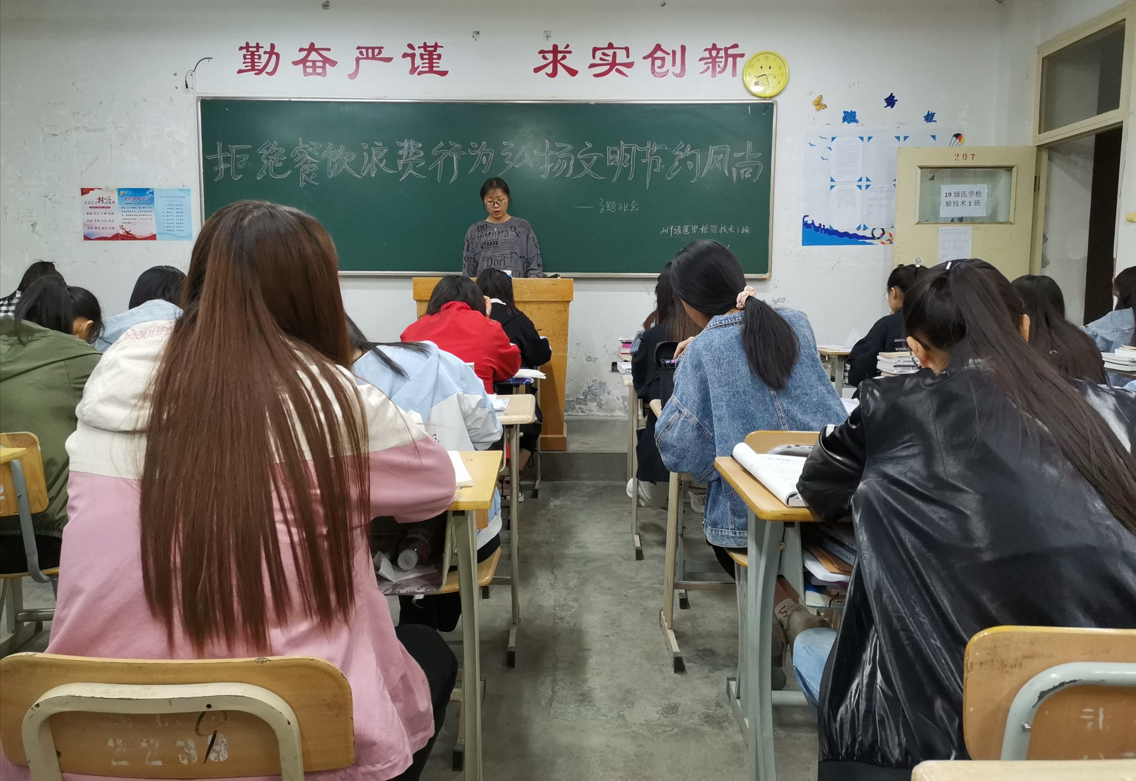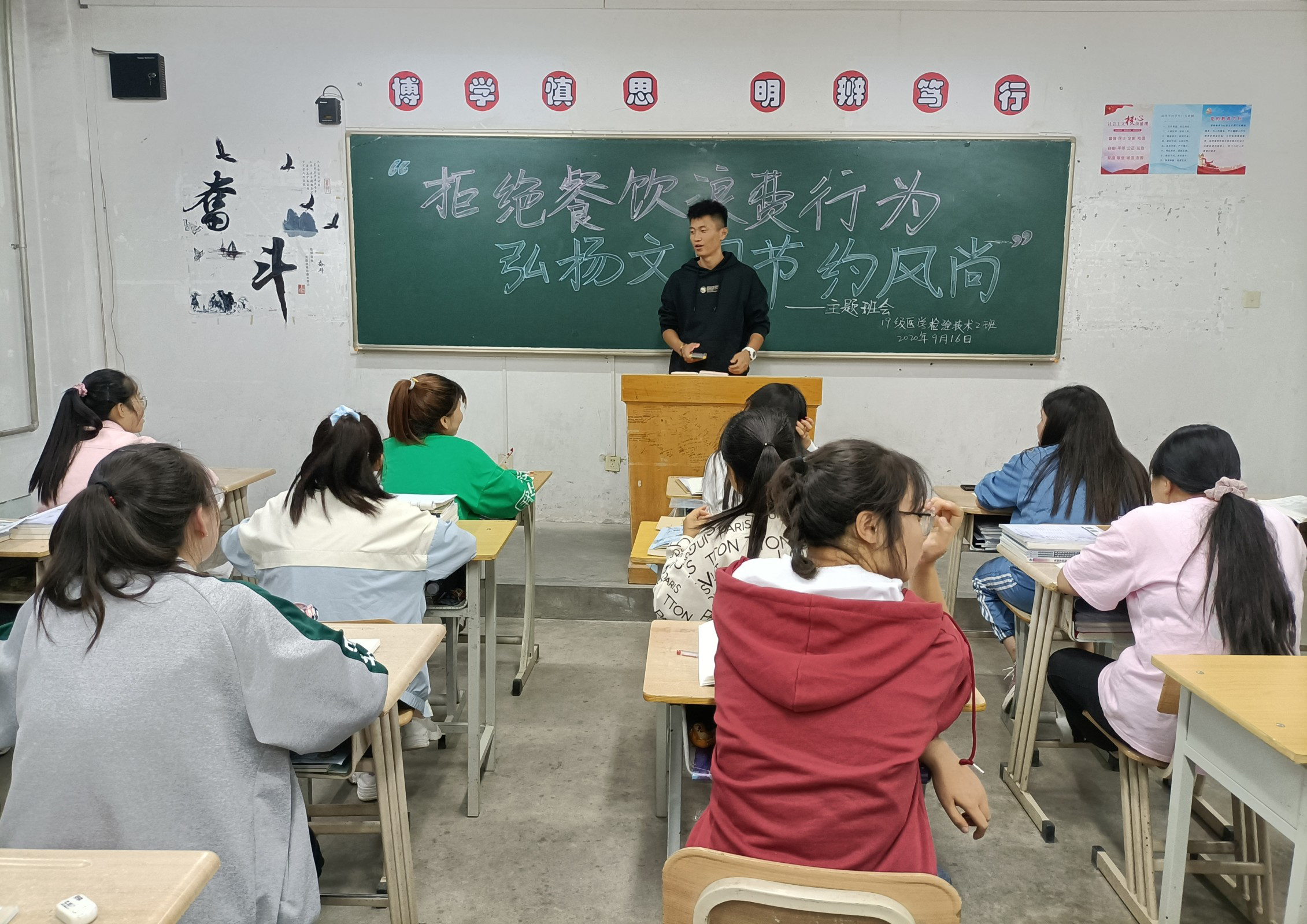 為深入貫徹落實(shí)習(xí)近平總書記關(guān)于制止餐飲浪費(fèi)行為的重要指示精神,確?!肮獗P行動(dòng)”取得實(shí)效,進(jìn)一步引導(dǎo)我系學(xué)生大力弘揚(yáng)勤儉節(jié)約傳統(tǒng)美德,培養(yǎng)勤儉節(jié)約良好習(xí)慣,全力營造“浪費(fèi)可恥、節(jié)約光榮”的濃厚氛圍,醫(yī)學(xué)技術(shù)與信息管理系于9月16日各教學(xué)班召開主題班會(huì)活動(dòng)。