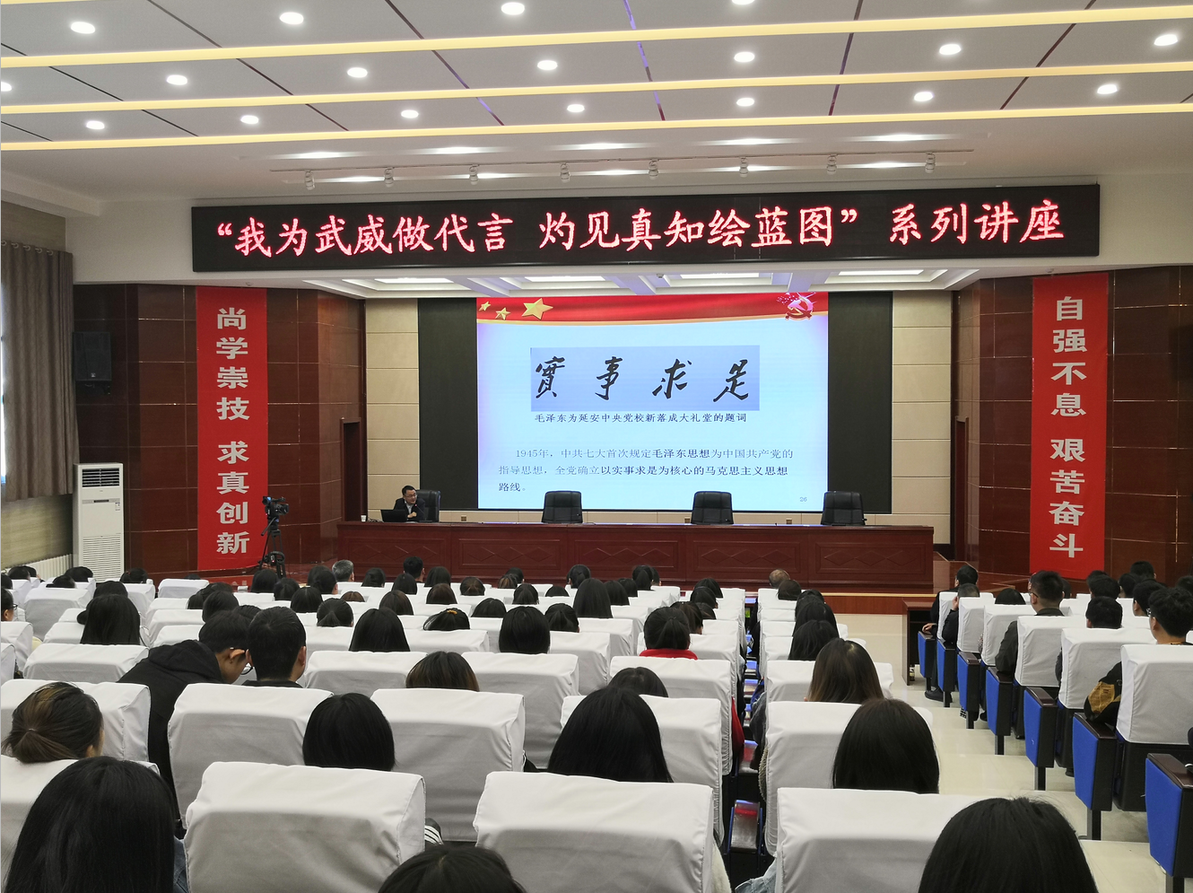 3月16日,武威職業(yè)學(xué)院“綠洲講壇”第12期在學(xué)院菁英廳舉行,本期活動(dòng)邀請(qǐng)到中國(guó)社科院哲學(xué)研究所副研究員、民勤縣委副書記周丹作主題為《掌握看家本領(lǐng) 堅(jiān)定理想信念》的報(bào)告。學(xué)院領(lǐng)導(dǎo)班子、中層干部、師生代表220余人參加了報(bào)告會(huì)。