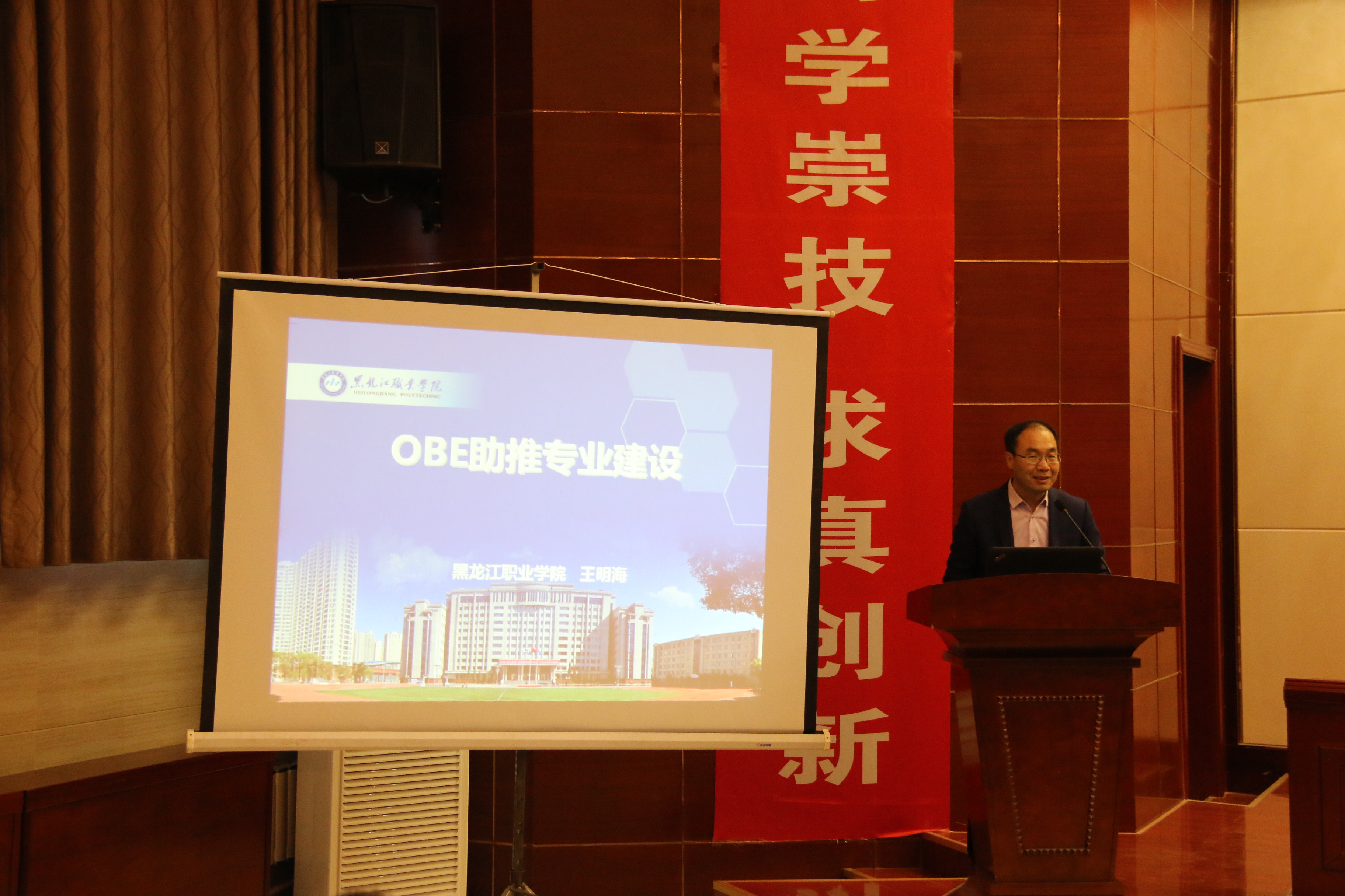 王明海教授以“成果導(dǎo)向教育(OBE)助推專業(yè)建設(shè)”為題作了專題報告。他結(jié)合自身多年的實踐經(jīng)驗和研究成果向與會者回顧了黑龍江職業(yè)學(xué)院成果導(dǎo)向課程開發(fā)歷程,從定義成果、設(shè)計課程到教學(xué)授課、評定結(jié)果、決定進(jìn)階五個方面系統(tǒng)闡述了成果導(dǎo)向課程開發(fā)與實施路徑,為參會高職院校教學(xué)改革提供了參考方向。