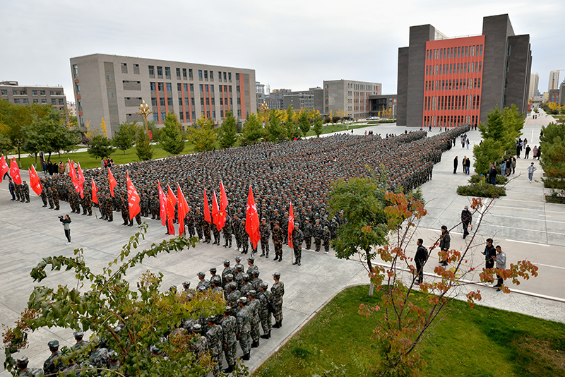 10月13日上午,學(xué)院2020級(jí)新生軍訓(xùn)動(dòng)員大會(huì)在大學(xué)生活動(dòng)中心前廣場舉行。學(xué)院黨委副書記翟存詳向軍訓(xùn)團(tuán)授旗,并宣布新生軍訓(xùn)開始;31666部隊(duì)政治工作部副主任杜太申作動(dòng)員講話,院領(lǐng)導(dǎo)王永緒、田迎春、何毅、陳曉煜、張開禮出席大會(huì);學(xué)院各教學(xué)院系負(fù)責(zé)人、輔導(dǎo)員、班主任及 2020級(jí)4339名學(xué)生參加了大會(huì)。大會(huì)由黨委委員、副院長王守云主持。