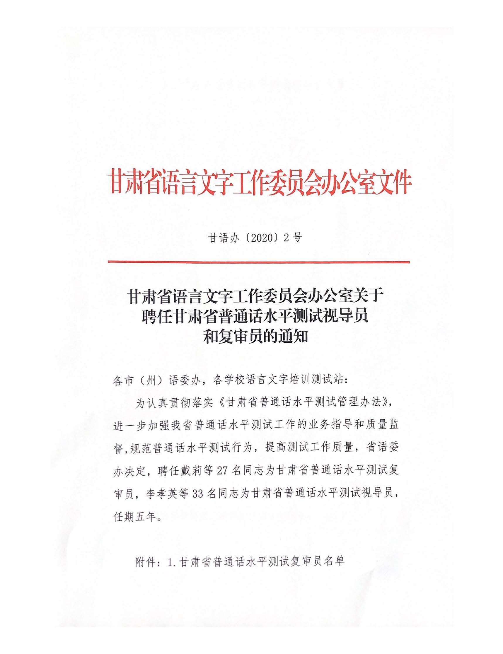 我院護理系趙穎教授獲得“甘肅省普通話測試復審員”資格
