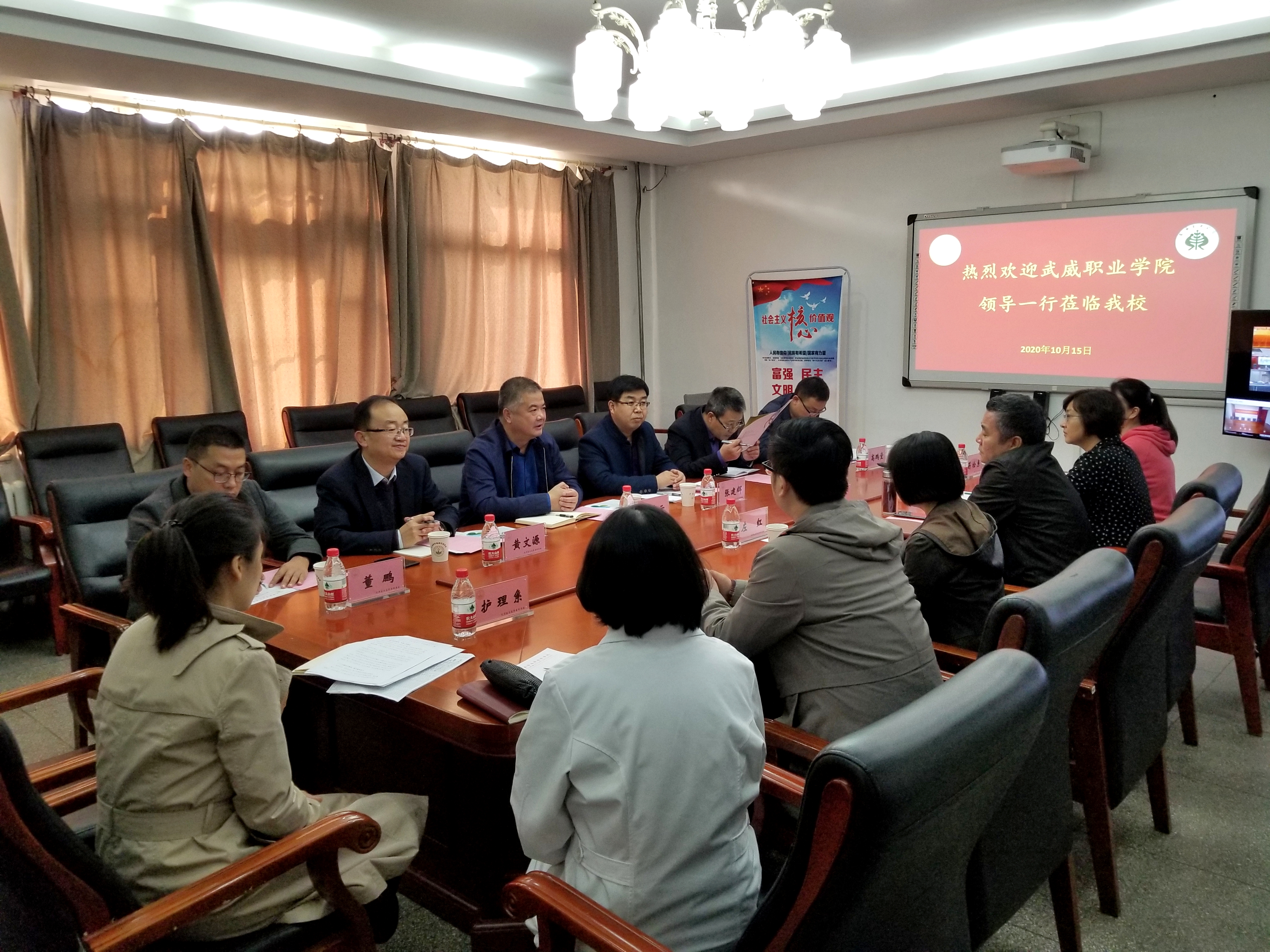 考察組一行分別與天津醫(yī)學(xué)高等??茖W(xué)校、天津職業(yè)大學(xué)進(jìn)行了深入交流座談。天津醫(yī)高專是國(guó)家雙高校中唯一一所衛(wèi)生類學(xué)校,在座談會(huì)上,醫(yī)高專為學(xué)院醫(yī)藥衛(wèi)生類專業(yè)群建設(shè)提出了指導(dǎo)意見(jiàn),介紹了醫(yī)高?!?.5+1.5”學(xué)制安排促就業(yè)、教學(xué)系黨委行政雙組長(zhǎng)抓就業(yè)、就業(yè)工作經(jīng)費(fèi)動(dòng)態(tài)調(diào)整引領(lǐng)就業(yè)的工作機(jī)制,并就下一步共同培養(yǎng)師資、互派青年骨干教師交流學(xué)習(xí)達(dá)成共識(shí)。天津職業(yè)大學(xué)是《天津—甘肅職業(yè)教育協(xié)作實(shí)施方案》合作院校,在天津職大座談會(huì)上,兩校圍繞專業(yè)群組群、產(chǎn)業(yè)學(xué)院組建模式、教學(xué)模式、探索產(chǎn)業(yè)學(xué)院建設(shè)、混合所有制二級(jí)學(xué)院建設(shè)、就業(yè)工作“一對(duì)一”模式、學(xué)生管理經(jīng)驗(yàn)和成果進(jìn)行了分享與交流。劉斌校長(zhǎng)出席并主持會(huì)議,對(duì)學(xué)院的雙高建設(shè)給予了特別關(guān)心與指導(dǎo)。他希望,雙方作為兄弟院校,要進(jìn)一步加強(qiáng)交流合作,努力為推動(dòng)?xùn)|西協(xié)作和武威職業(yè)教育高質(zhì)量發(fā)展做出新的更大的貢獻(xiàn)。