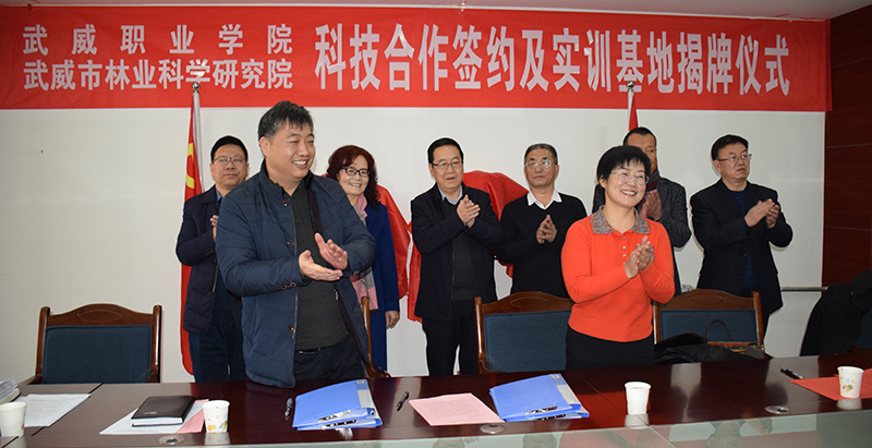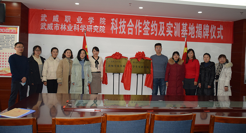 為了全面落實(shí)《教育部、甘肅省人民政府關(guān)于整省推進(jìn)職業(yè)教育發(fā)展打造“技能甘肅”的意見》和“2020年全國職業(yè)教育教師企業(yè)實(shí)踐基地推進(jìn)會(huì)”等會(huì)議精神,進(jìn)一步推動(dòng)鄉(xiāng)村振興和創(chuàng)新驅(qū)動(dòng)戰(zhàn)略的實(shí)施,大力推進(jìn)生態(tài)文明建設(shè),全面提升教師的科技創(chuàng)新能力、實(shí)踐教學(xué)水平和學(xué)生的職業(yè)技能,為我院“雙高”建設(shè)添磚加瓦,1月25日上午,學(xué)院與武威市林業(yè)科學(xué)研究院舉行了科技合作協(xié)議簽約暨教師實(shí)踐基地和學(xué)生實(shí)訓(xùn)基地揭牌儀式。武威市林業(yè)和草原局黨組書記、局長戴繼春,武威市林業(yè)科學(xué)研究院院長張勤德,副院長張強(qiáng)威、張金學(xué),學(xué)院副院長何毅、教務(wù)處處長仲生仁、招生就業(yè)處處長蔡柱山、現(xiàn)代農(nóng)業(yè)技術(shù)系黨總支書記晏素珍、林科院專業(yè)技術(shù)人員代表和現(xiàn)代農(nóng)業(yè)技術(shù)系教師代表等出席了簽約暨揭牌儀式,林科院副院長張強(qiáng)威主持儀式。