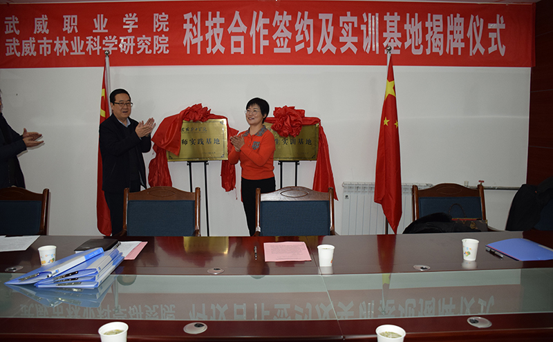 武威市林業(yè)和草原局黨組書記、局長戴繼春,學(xué)院黨委委員、副院長何毅為武威職業(yè)學(xué)院實(shí)踐實(shí)訓(xùn)基地和學(xué)生實(shí)習(xí)實(shí)訓(xùn)基地揭牌。