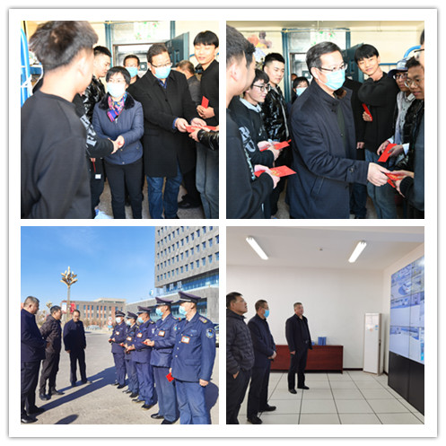? ? 趙明一行先后來到學(xué)生公寓、消防控制中心、學(xué)院總值班室、鍋爐房、醫(yī)務(wù)室、快遞代辦點和各值班點,代表學(xué)院黨委看望、慰問春節(jié)期間堅守在工作崗位的值班人員,并向他們送上節(jié)日慰問金。對值班人員堅守崗位、默默奉獻(xiàn)表示衷心的感謝,并祝大家新春快樂,家庭幸福。希望全體值班人員嚴(yán)格按照學(xué)院疫情防控要求,繼續(xù)細(xì)心細(xì)致做好校園安全穩(wěn)定和后勤保障工作。
