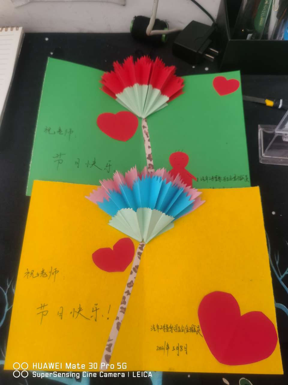 ? 3月8日上午,利用課間休息時間,汽車工程系學生通過贈送自制小賀卡、每人一句祝福語等形式為女教師們獻上了節(jié)日的祝福。