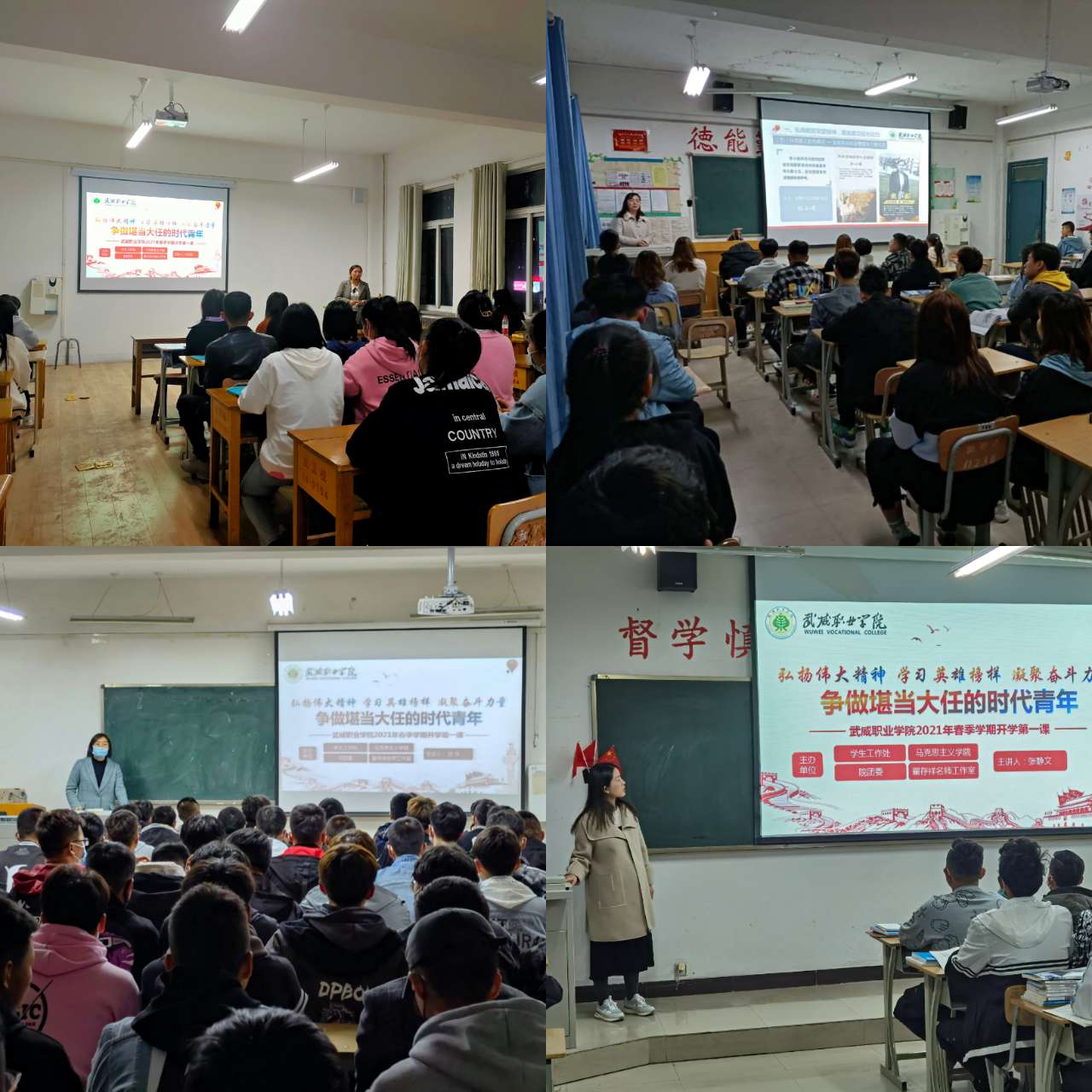 授課圍繞“弘揚脫貧攻堅精神,激發(fā)建功強大動力”、“學習戍邊英雄事跡,匯聚強國磅礴力量”、“遵守國家規(guī)定要求,筑牢疫情防控防線”和“牢固樹立安全意識,切實維護校園安全”四個方面展開,授課教師和同學們一起全面分享了脫貧攻堅取得的偉大成就和衛(wèi)國戍邊英雄的感人事跡,并對常態(tài)化疫情防控工作和學校安全工作做了細致講解。旨在激勵廣大學生弘揚脫貧攻堅精神,厚植愛國戰(zhàn)斗情懷,并使同學們更好地適應學校學習生活,遵守常態(tài)化疫情防控制度和學院各項規(guī)章制度,以保證新學期教育教學工作平穩(wěn)有序開展,保證全院長期安全穩(wěn)定。
