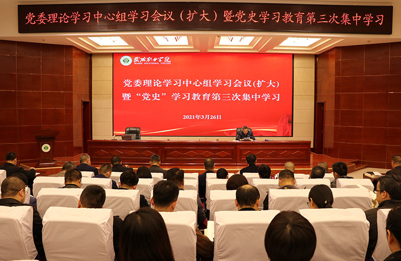 3月26日下午,學院黨委在菁英廳召開2021年3月黨委理論學習中心組學習會議。深入學習領會習近平總書記在中央黨校(國家行政學院)中青年干部培訓班開班式上的重要講話精神。認真學習研讀《中國共產黨簡史》《毛澤東、鄧小平、江澤民、胡錦濤關于中國共產黨歷史論述摘編》和《論中國共產黨歷史(習近平)》中的篇目章節(jié)。