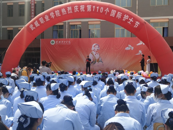 在第110個國際護士節(jié)到來之際,為慶祝中國共產(chǎn)黨百年華誕,繼承和弘揚南丁格爾救死扶傷的人道主義精神和為護理事業(yè)無私奉獻的高尚品質(zhì),強化我院護生職業(yè)理念和使命擔當,推動我院護理事業(yè)不斷向前發(fā)展,助力學院“雙高”建設(shè),5月11日下午,學院在明遠樓北廣場舉辦5.12國際護士節(jié)慶祝活動。學院副院長王永緒、張開禮、武威市區(qū)部分實習醫(yī)院護理部、科教科負責人及學院相關(guān)處室領(lǐng)導出席本次活動,護理系師生1600余人參加了本次活動。
