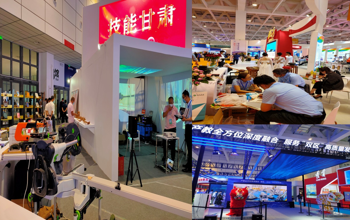 會議期間,在山東國際會展中心舉辦了“技術創(chuàng)新應用與智能實訓裝備展覽會”和“產教融合校企合作成果展”。